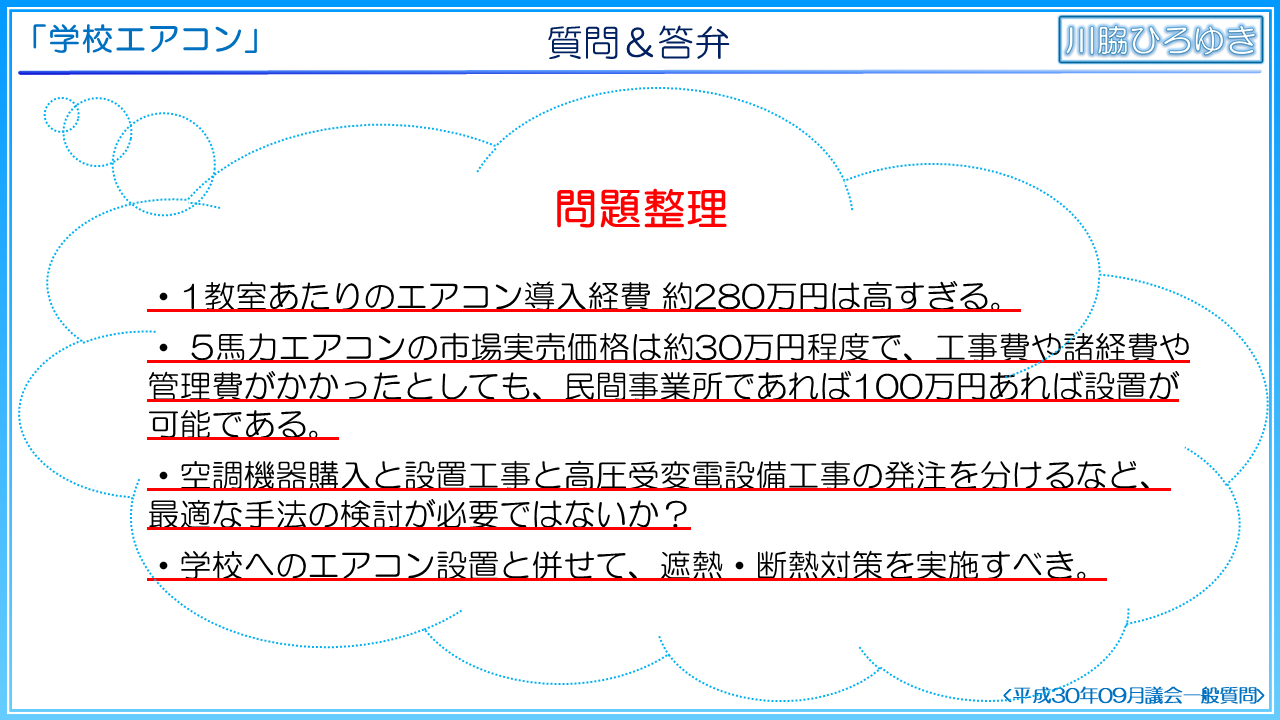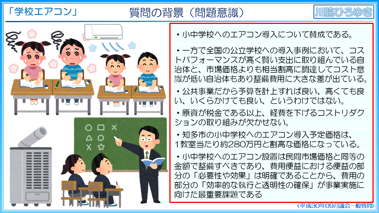 「小中学校へのエアコン設置は民間市場価格と同等の金額で整備すべき」