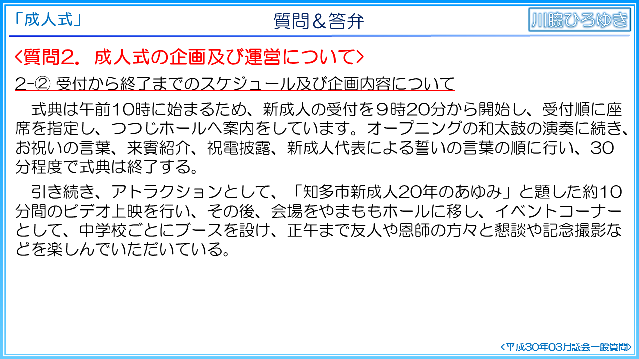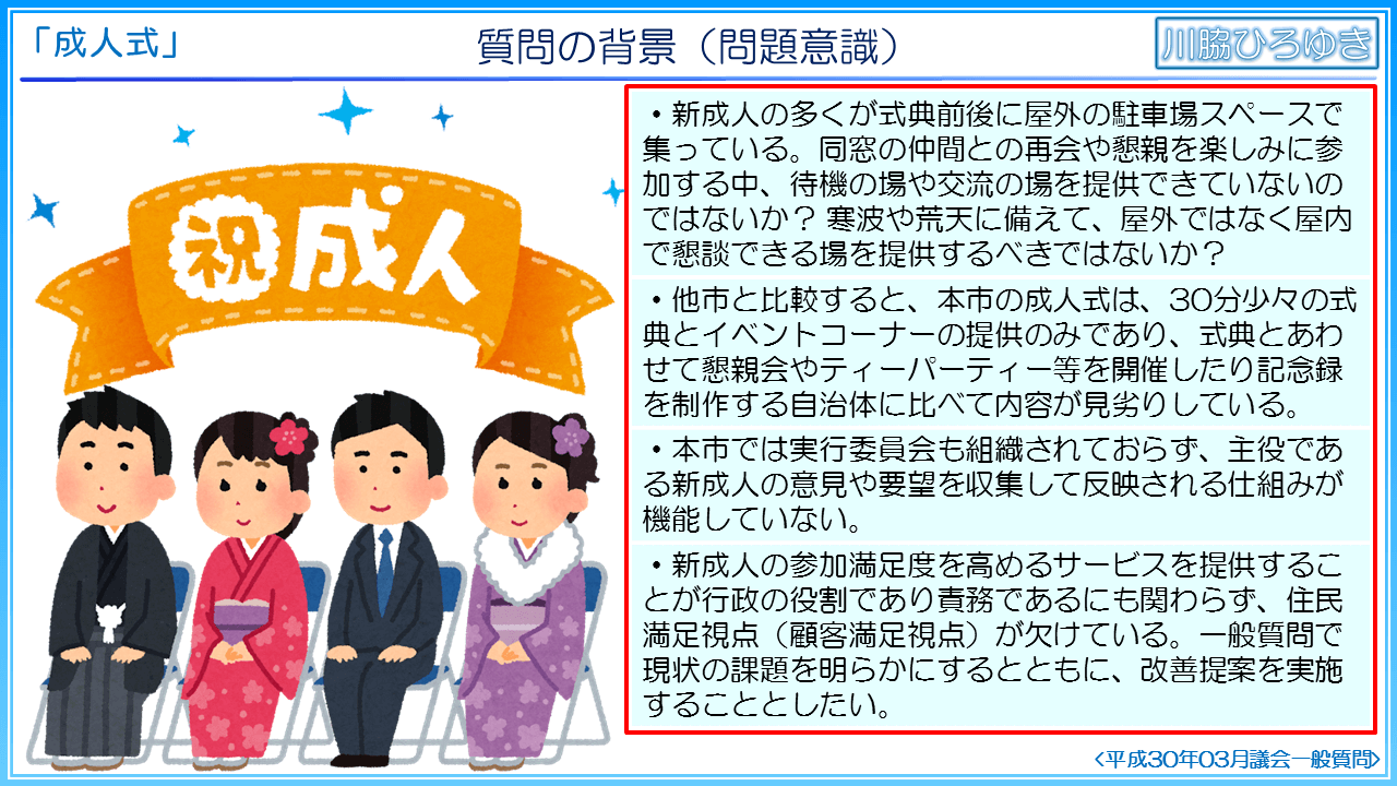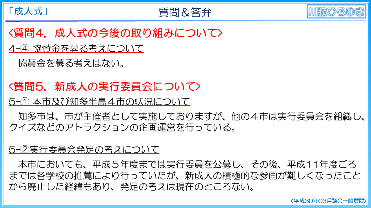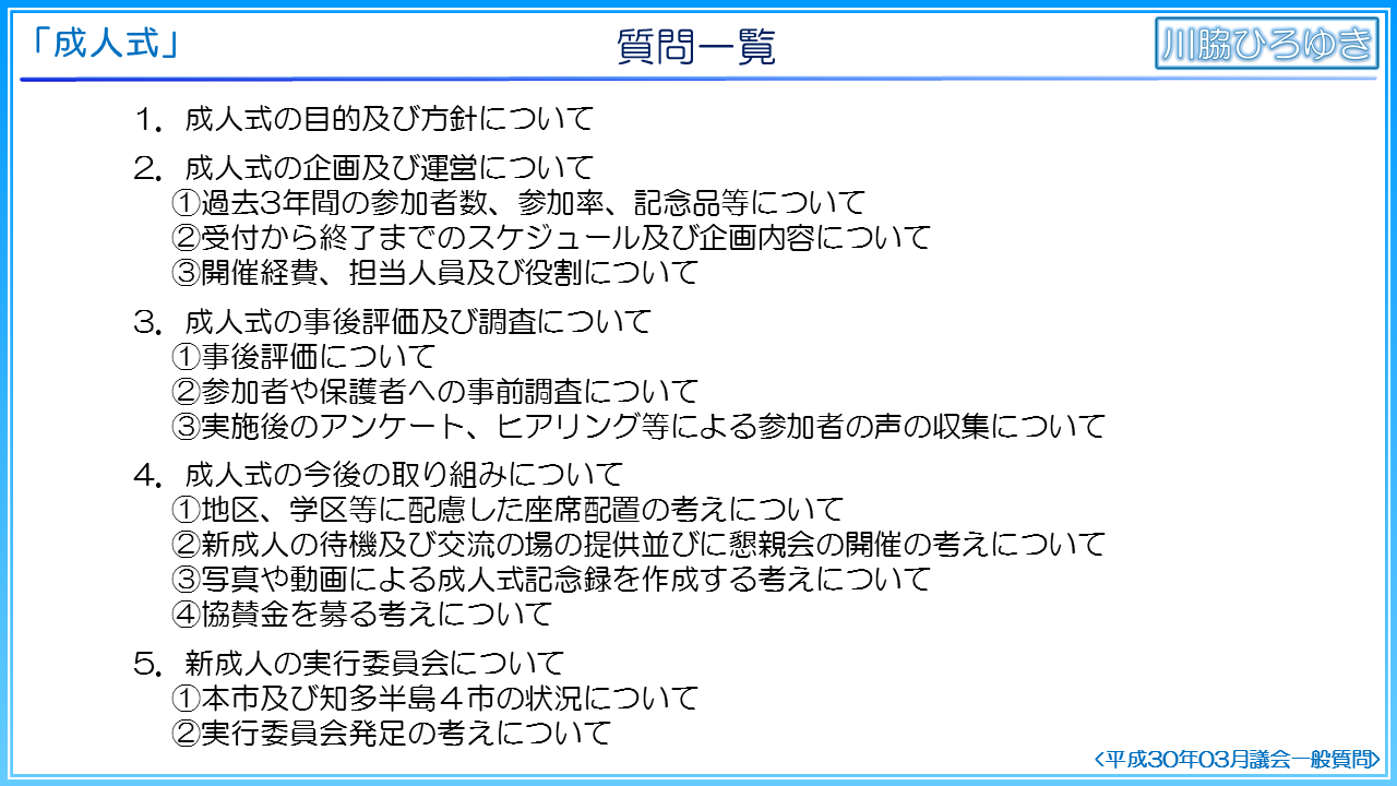 ◆知多市の成人式の事後評価について(2019年3月一般質問)◆