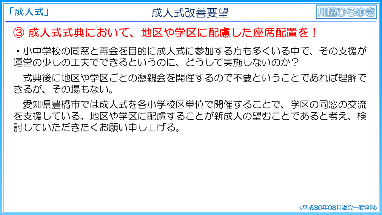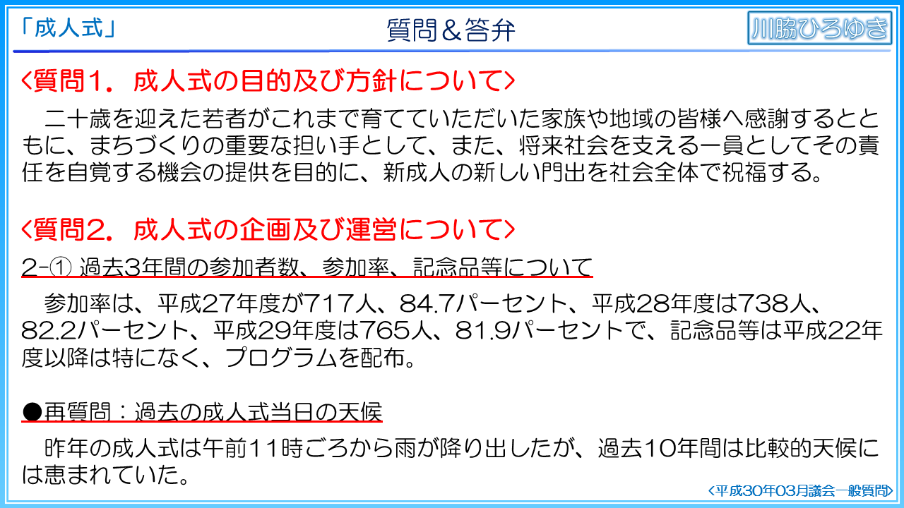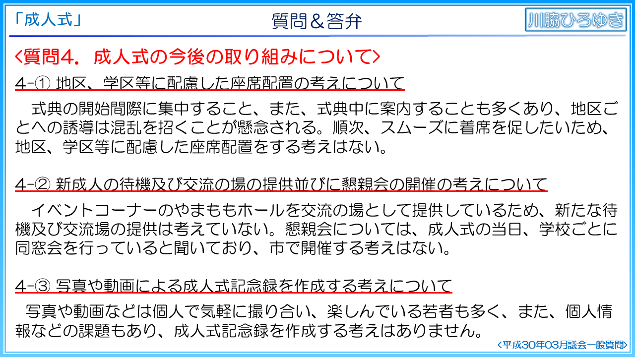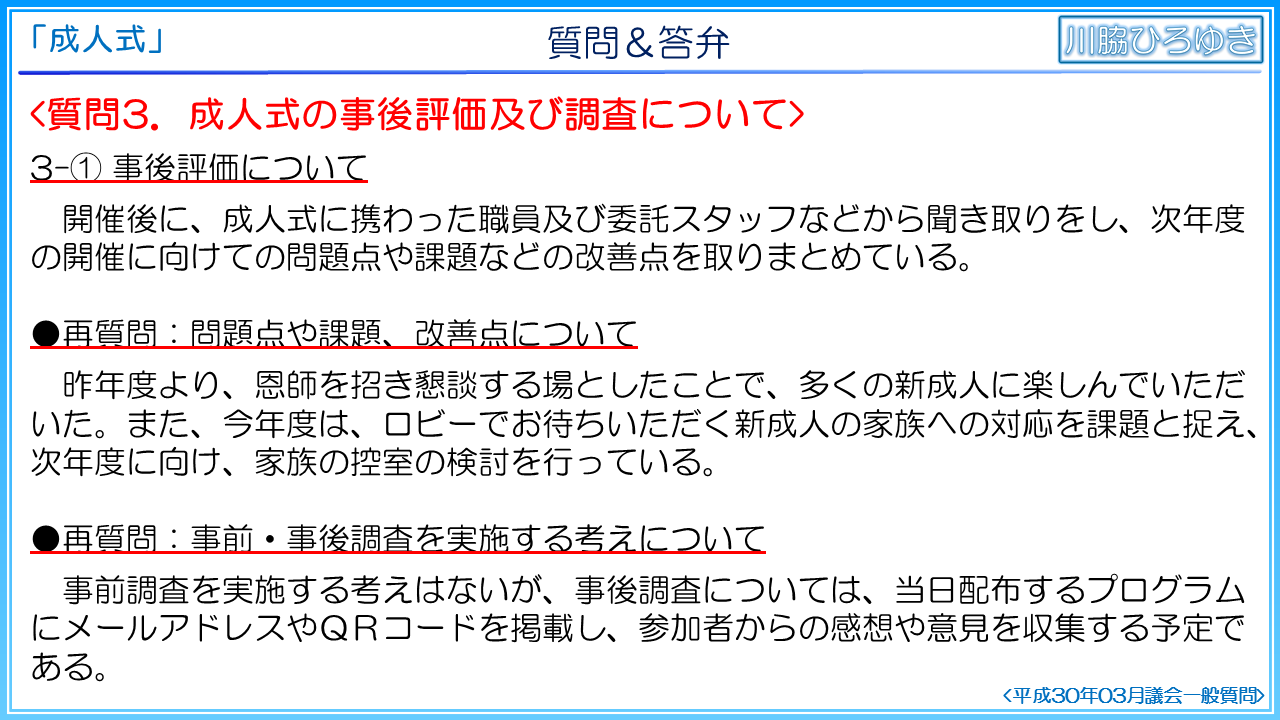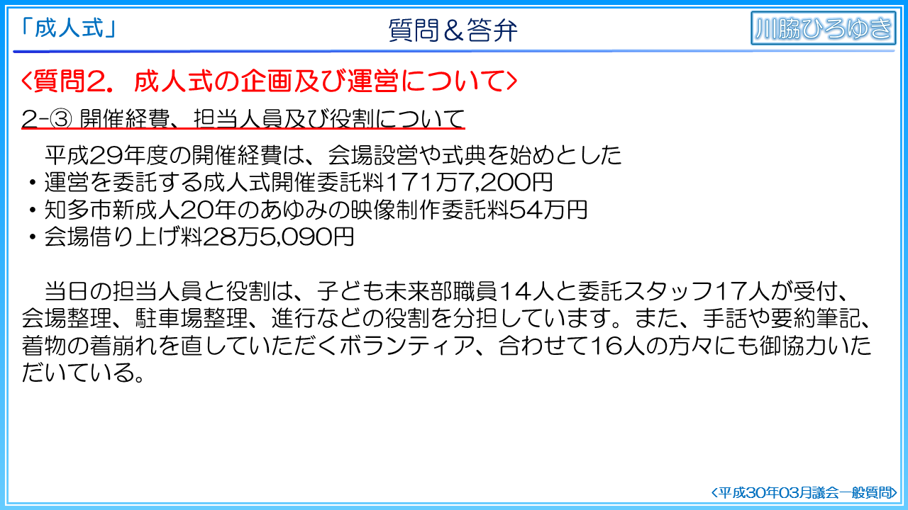 ◆知多市の成人式の事後評価について(2019年3月一般質問)◆